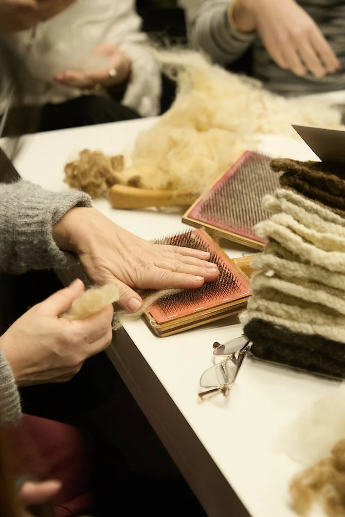 Justine Lee’s ‘Fibre to Yarn workshop’ with MA and BA Fashion Design students.