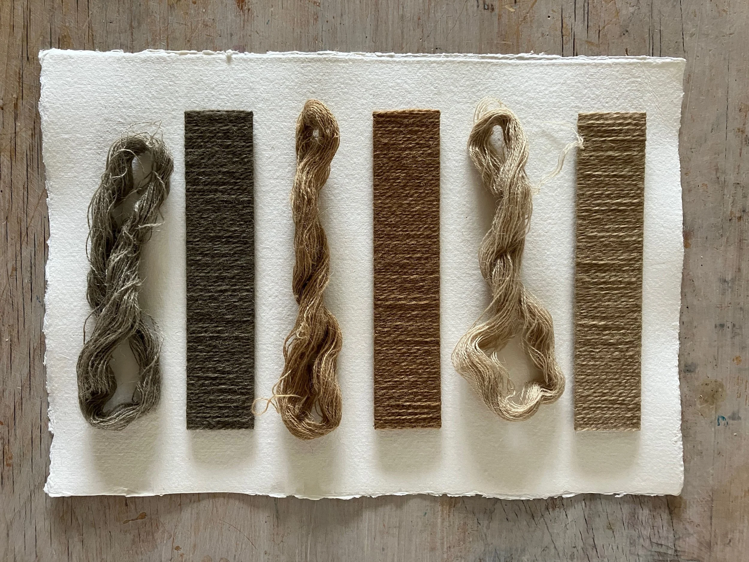 There is nothing quite like knitting, weaving or plaiting to allow the mind to run free, to think laterally and make seemingly random connections, to find possibilities. The wool for these samples is all local, organic and in the natural colours of the fleece. Wensleydale is a revelation: very soft, quite fine, and silky. I was led to using it after listening to Julia Desch describe it as more luxurious than merino. The Shetland yarn from Tamarisk Farm is lovely to knit with too.